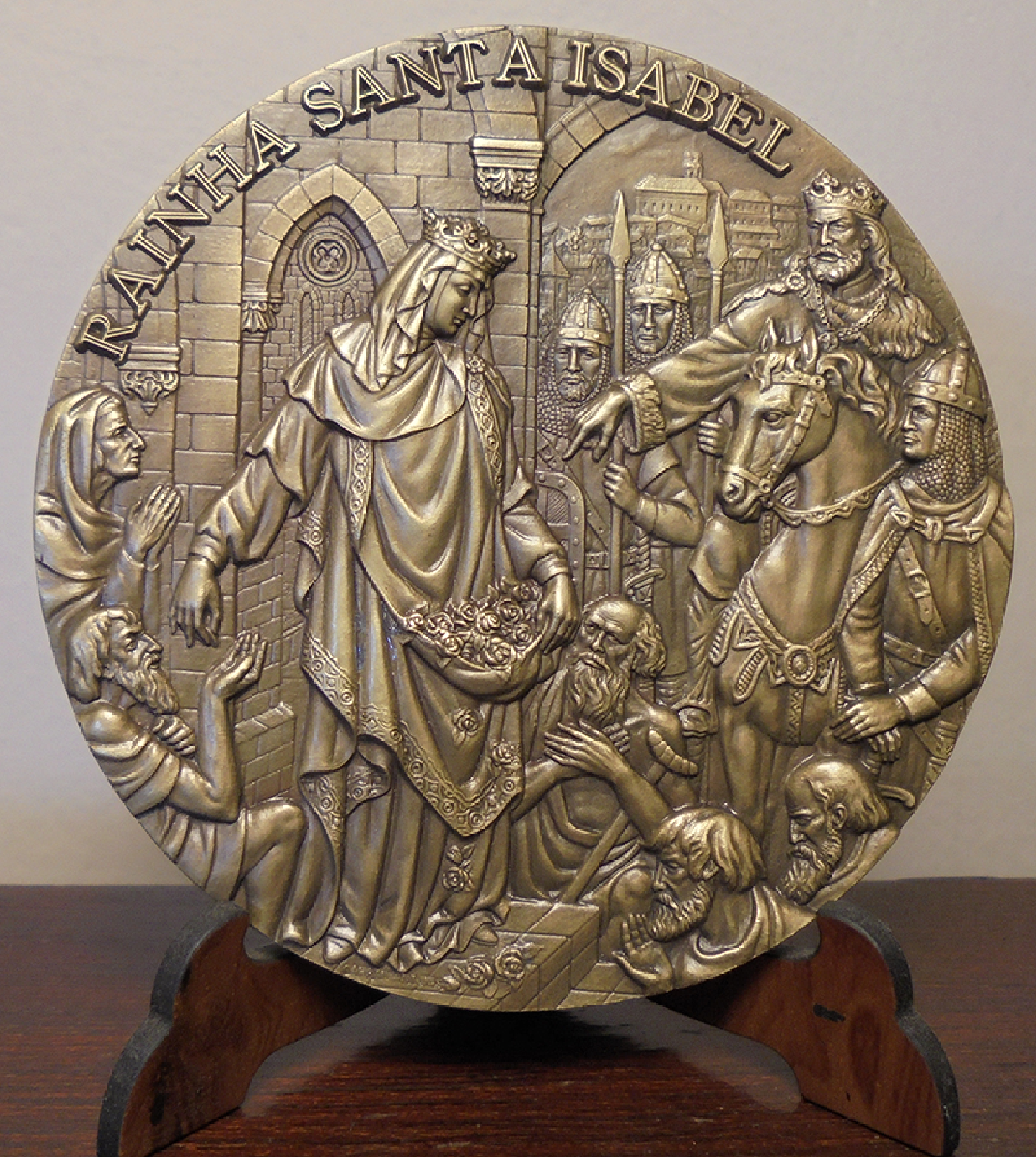 Um dia, levava a Rainha Santa entre as pregas do manto, uma boa quantia de moedas de prata, para socorrer vários necessitados. Nisto, foi surpreendida pelo rei seu marido.